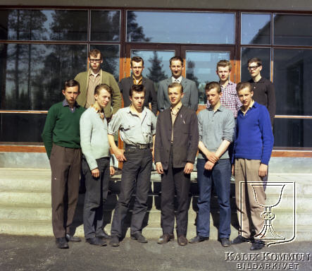 Bakre fr.v. Per Almqvist, Tage, läraren Uno Karlsson, Ove Olofsson, Sten-Ivar Bergström, Främre fr.v. Börje Larsson, Lars Tingvall, ?, ? Sundell, Hans Brännvall, Set Öberg. |