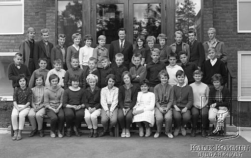 Bakre fr.v. Viking Wikström,?,?, Annmari Karlsson,?,Gudrun Johansson, läraren Bo Rönnbäck,?, Katarina Isaksson, Karin Strömbäck, Bertil Blomdal, Göran Öman, Torkel Wikström. Mellan fr.v.Sten Ekman, Albert Nilsson, Jonny Kuusisto, Kurt Stenudd, Lars Karlsson, Bertil Strömberg, Göran Nilsson, Kjell Johansson, Benny Johansson, Folke Grönlund, Roland Karlsson, Kjell Norrbin. Främre fr.v.?, Kristina Johansson, Britt-Marie Strömberg, Margareta Hjelm, Christina Persdotter, Margareta Sandström, Åsa Lindberg, Siv Lindbäck, Ingegärd Olofsson, Sigbritt Elveland, Hannele H, Ann-Kristin Eriksson. |