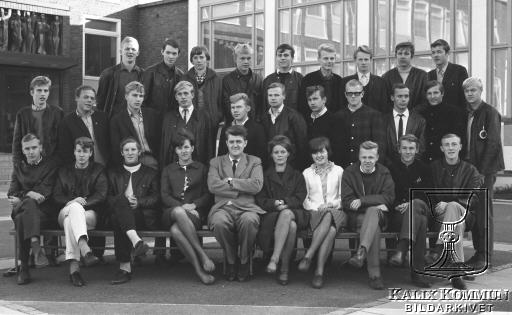 Bakre fr.v.: Arnold Öberg, Jan-Erik Larsson, Leif Nilsson, Sven Rosendahl, Jan Fors, Christer Johansson, Leif Karlsson,? Huurula, Tord Nilsson. Mellan fr.v.: Olov Eriksson, Per-Erik Sandberg, Roger Vaara, Göte ?, Göran Nyström, Inge Andersson, Jan-Erik Nordmark, Sven Andersson, Björn Hermansson, Krister Johansson,Tomas Johansson Främre fr.v.: Sten-Inge Videhult, Börje Morian, Erik Bergström, Agneta Johansson, lärare Ola Lundbäck, Birgitta Ökvist, Eddy Johansson, Svante Goding, Bernt-Ove Hermansson, Ove Eriksson. |