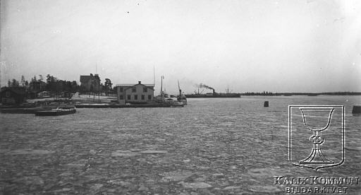 | Det är höst och årets sista fartyg lastar innan vintern sätter stopp för säsongens sjöfart. Obs. bilden är tagen innan den första massafabriken på Karlsborg, som byggdes år 1913. Bilden ur Filipsborgs fotosamling. Bildarkivet tar gärna emot kompletterande information om bilden. |  |