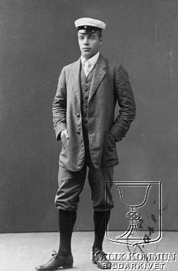 | Studenten, sedermera advokaten Gösta Bergman var son till "Manne" Bergman. Han var gift med sjukgymnasten Ingrid Svanberg (känd som "fru Musika"). Det var dom sista av familjen Svanbergs som bodde på herrgården Filipsborg. Bilden ur Filipsborgs fotosamling. Bildarkivet tar gärna emot kompletterande information om bilden. |  |