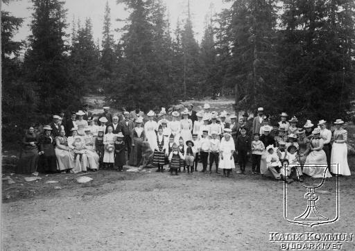 | Gästerna har samlats på badstranden nedanför Gillesalen. Bilden ur Filipsborgs fotosamling. Bildarkivet tar gärna emot kompletterande information om bilden. |  |