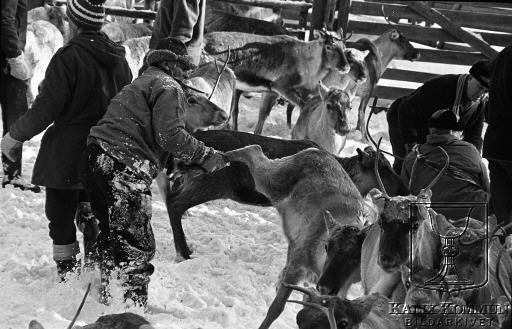 Renskiljning är ett tämligen handgripligt arbete som kräver god erfarenhet och styrka om man skall kunna hålla fast dom motspänstigt kämpande djuren.