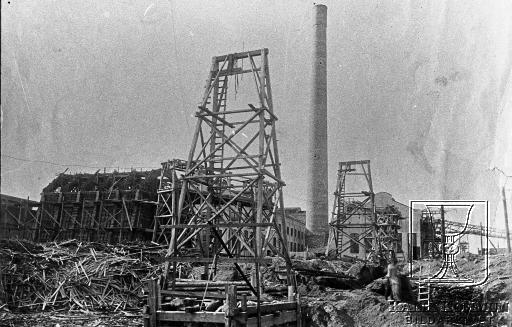 På bilden ser man det påbörjade bygget av fabriken. På den här tiden hette sågverket på Karlsborg "Baltiska Trävaru AB". Huvudägaren var Marcus Wallenberg. År 1913 fattades beslutet om att på platsen bygga denna sulfatfabrik. Precis när fabriken var färdig att tas i bruk startade första världskriget. En förödande situation för hela svenska näringslivet, inte minst för detta bruk. Driften lades ned redan under år 1918. Maskinerna såldes till Finland strax efter krigsslutet. |  |