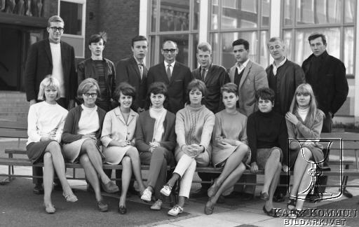 Bakre fr.v. ?,?,?, Klassföreståndaren Rune Wiklund, Leif Rågnevall, Lars Ölund, ?, Jan-Erik Nordmark. Övriga okända. |