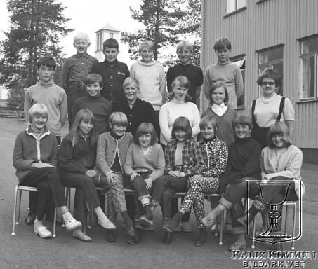 Bakre fr.v. Ove Nilsson, Erik Brännström, Stefan Nybom, Bertil Englund, Yngve Johansson. Mellan fr.v. Ingvar Johansson, Nils Nyström, Ulf Sandström, Anna-Greta Johansson, Gun-Britt Söderholm, lärare Elsie-Britt Gulliksson. Främre fr.v. Anita Nilsson, Ulla-Brith Rönnbäck, Ann-Sofie Sundberg, Annika Karlsson, Monika Strömbäck, Barbro Stenlund, Nancy Josefsson, Carina Karlsson. |