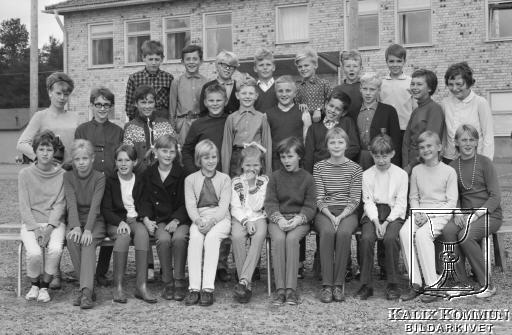 Bakre fr.v. Gunnar Lindgren, Erik Larsson, Jan Drugge, Tord Sundström, Nils Vester, Lars-Olov Fredriksson, Erik Lindberg. Mellan fr.v. Läraren Ulla Berger, Margot Hjälte, Britta Enbom, Stefan Eriksson, Per Hedenberg, Folke Hammar, Stefan Nilsson, Jan-Olov Nilsson, Elisabet Hortlund, Margareta Johansson. Främre fr.v. Britt Boström, Ingrid Wallin, Brita Isaksson, Ann Gustavsson, Monika Hansson, Eva Thorneus, Monica Hellström, Karin Lindström, Gun-Britt Fellenius, Barbro Sandlund, Monika Söderlund.