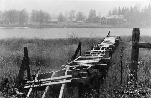 Bild över Kalixälv, tagen 1990. På bakgrunden Vassholmen som var fram till 1970-talet skiljestället för timmer. På holmen finns omklädningsbaracker, verkstads- och kontorsbyggnader och magasin. Det gamla tingshuset från kyrkstaden flyttades till Vassholmen efter sekelskiftet 1900. Bildarkivet tar gärna emot kompletterande information om bilden. |  |