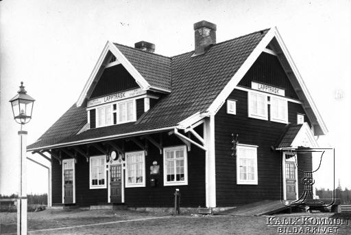 OBS! Bilden hämtad ur bildkollaget nr. 531. Under perioden mellan 1902 och 1918 byggdes järnvägen från Morjärv till Lappträsk - Karungi - Övertorneå och Haparanda. Lappträsk nya järnvägsstation står klar. Bildarkivet tar gärna emot kompletterande uppgifter om motivet.