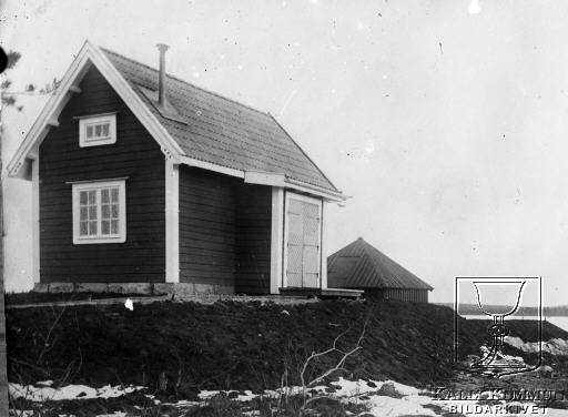| OBS! Bilden hämtad ur bildkollaget nr. 518. Under perioden mellan 1902 och 1918 byggdes järnvägen från Morjärv till Lappträsk - Karungi - Övertorneå och Haparanda. På bilden ser man ett pumphus i Lappträsk och finns med i Teknisk-ekonomisk redogörelse för stadsbanan Boden-Morjärv /utarbetad genom Kungl. Järnvägsstyrelsens försorg, för år 1903. Samt liknande Teknisk-ekonomisk redogörelse för anläggningen av satdsbanan Morjärv-Lappträsk och Landsvägen Boden-Morjärv-Lappträsk, en för år 1913. Bildarkivet tar gärna emot kompletterande uppgifter om motivet. |  |