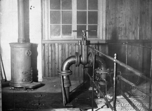 OBS! Bilden hämtad ur bildkollaget nr. 518. Under perioden mellan 1902 och 1918 byggdes järnvägen från Morjärv till Lappträsk - Karungi - Övertorneå och Haparanda. Troligen är detta en bild av interiören från vattentornet i Lappträsk där man tankade ångloken med vatten. Bildarkivet tar gärna emot kompletterande uppgifter om motivet.