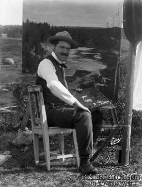 | Under perioden mellan 1902 och 1918 byggdes järnvägen från Morjärv till Lappträsk - Karungi - Övertorneå och Haparanda. Troligen en av dom många naturmålarna som reste runt i norrland för att föreviga dom vackra vyerna. Bildarkivet tar gärna emot kompletterande uppgifter om motivet. |