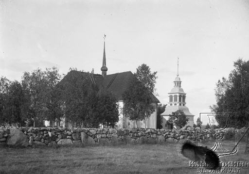| Under perioden mellan 1902 och 1918 byggdes järnvägen från Morjärv till Lappträsk - Karungi - Övertorneå och Haparanda. Karungi kyrka, vackert belägen på kyrkholmen. Bildarkivet tar gärna emot kompletterande uppgifter om motivet. |  |