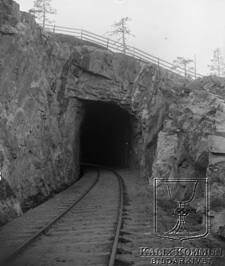 Under perioden mellan 1902 och 1918 byggdes järnvägen från Morjärv till Lappträsk - Karungi - Övertorneå och Haparanda. På bilden ser man den nybyggda tunneln i Vitvattnet. Bildarkivet tar gärna emot kompletterande uppgifter om motivet.