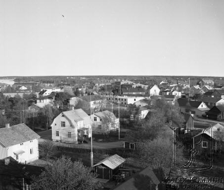 | Utsikt i riktning söderut, från gamla brandstationen, mot centrum. I högra kanten av bilden skymtar kykan. Bildarkivet tar gärna emot kompletterande information om bilden. |  |