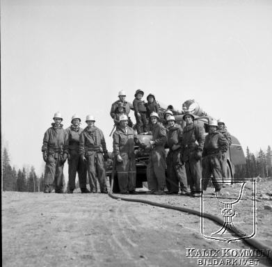 Hela gänget som har ansvaret för brandskyddet i Kalix är uppställda, i samband med en övning får vi förmoda. Bildarkivet tar gärna emot komplettterande information om bilden.