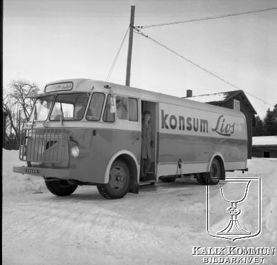 Plötsligt är det inte lönsamt längre med en butik i varje by. Konsum lägger ner sina byabutiker. En buss sätts in som ersättning för dom nedlagda butikerna. Idag finns inte heller dom kvar. Bildarkivet tar gärna emot komplettterande information om bilden.