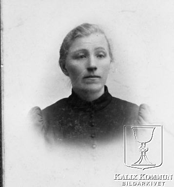 | Amanda Bäckström, f. Enström (1862-) var skollärardotter från Innanbäcken. Hon gifte sig med lotsen Karl Olof Bäckström i Bredviken och bodde i den gård som senare ägts av dottersonen Eric Rothfjell. Bilden inlämnat av Barbro Scott. Bildarkivet tar gärna emot kompletterande information om bilden. |  |