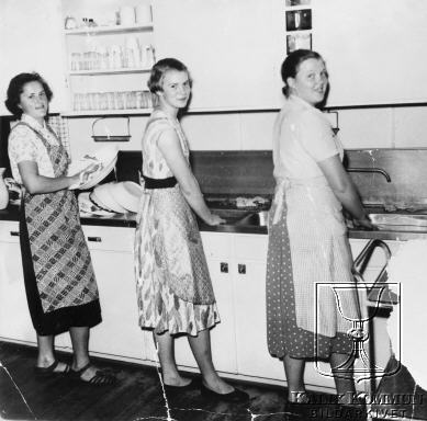 Kvinnor i köket på mässen vid det gamla skiljestället Vassholmen.