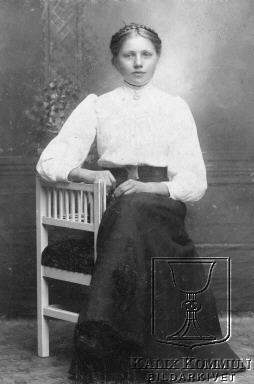 | Hulda Sundbäck, f. Ekman (1885-1930), var dotter till Ulrik Ekman i Korpikå och gift med Axel Sundbäck i samma by. Bildarkivet tar gärna emot kompletterande information om bilden. |  |