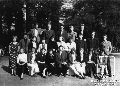 Bakre fr.v. Olov Nordgren, Lars Johansson, Fred Westerlund, Per Johansson, Roland Olovsson. Mellan fr.v. Sigrid Sennström, Ivar Persson, Gun Bäckström, Barbro Karlsson, Marianne Isaksson, Majvor Karlsson, Marianne Krona, Lars Guth, Ingvar Emmoth. Främre fr.v. Margareta Andersson, Lena E Munck af Rosenchöld, Greta Wallgren, Berit Åström, Läraren Bo Rönnbäck, Barbro Nilsson, Viviann Lindvall, Britt-Marie Johansson, Svante Johansson. |