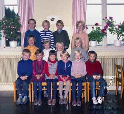 Bakre fr.v. Bengt-Arne Lindgren, Anders Unnbom, Per Larsson, Lärarinnan Gunilla Häggström. Mellersta fr.v. Gunilla Enström, Birgitta Johansson, Doris Lille, Britt Enström. Främre fr.v. Svante Larsson, Margareta Nilsson, Agneta Unnbom, Carina Häggström, Ingmarie Wallgren, Kennert Enström. |