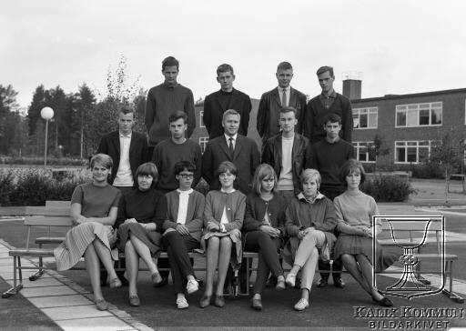 Bakre fr.v. Gösta Sundvall, ?, Kjell-Erik Öberg,?. Mittersta raden ?, ?, Läraren Lennart Olovsson, ?, ?. Övriga är okända. |