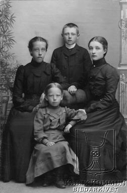 Från vänster är det Ester Helena (1888-1914) Jonas Daniel (1892-1911) och Hildur Maria (1886-1934) samt nertill Aina Angelika (1895-)