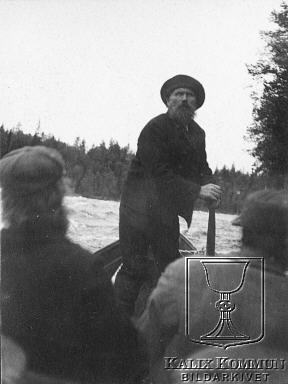 Här ser man hur skärpt mannen vid styråran är, det gäller att hålla både tungan och åran rätt. Ur Arvid Taube:s fotosamling över resan han genomförde tillsammans med sin vän fotografen Hugo Salling. Bildarkivet tar gärna emot kompletterande information om bilden.