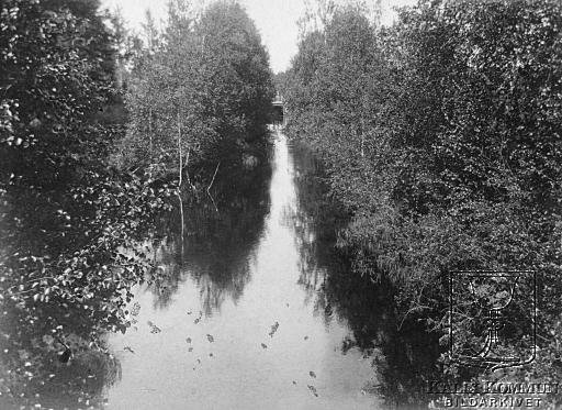 | Flottningen i Kalix älv har varit av största betydelse för skogsindustrin, långt in i vår tid. Med hjälp av dom många dammar som byggdes, i dom små biflödena till Kalix älv, reglerades vattennivån så att virket utan hinder kunde flottas ut till huvudälven. Ur Arvid Taube:s fotosamling över resan han genomförde tillsammans med sin vän fotografen Hugo Salling. Bildarkivet tar gärna emot kompletterande information om bilden. |  |