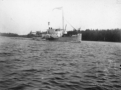 Hjulångaren gick i trafik mellan Luleå - Kalix - Haparanda. Här är den på väg in mot kajen nedanför kyrkan. Ur Arvid Taube:s fotosamling över resan han genomförde tillsammans med sin vän fotografen Hugo Salling. Bildarkivet tar gärna emot kompletterande information om bilden.