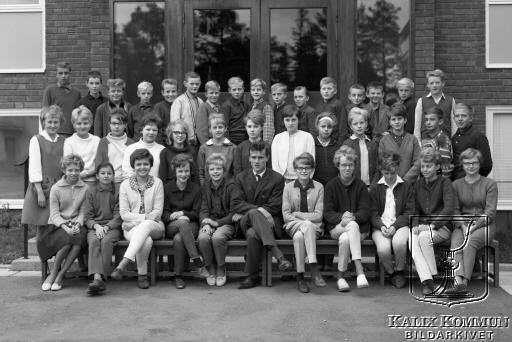 I mellanraden fr.v. Karin Stenberg,?,?, Monika Mörk, övriga okända. Nr 2 i främre raden är Maria Bengtsson och i mitten sitter läraren Ivar Persson, övriga är okända. |