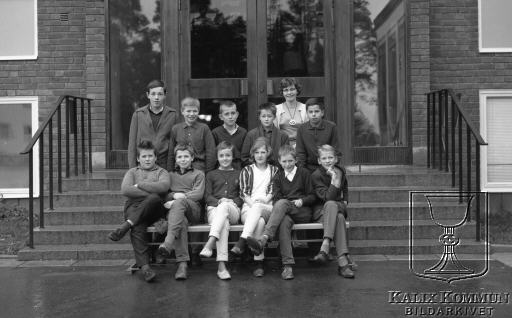 Bakre fr.v. Kennet Gustavsson, Evert Rönnqvist, Bengt Jakobsson, Tommy Öqvist, Läraren Ragnhild Lundborg, Lars Bergström. Främre fr.v. ? Resin, Per Olov Brännmark, Barbro Karlsson, ?, Holger Häggström, ?. |