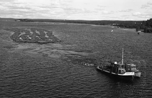Här har den större bogseraren Viking tagit över lasset som skall ner till något av dom många havsflottningsverk som låg placerade ute vid kusten.