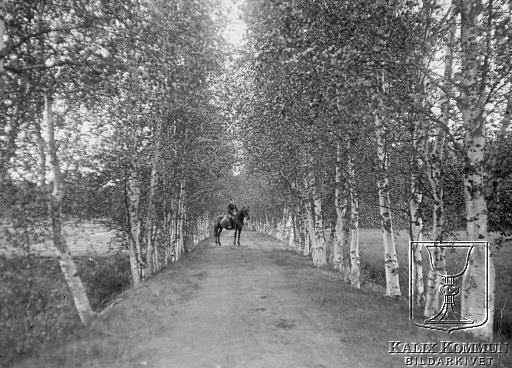 Vem ryttaren är på allén mellan nyborgsvägen och Filipsborgs herrgård. Bilden ur Filipsborgs fotosamling. Bildarkivet tar gärna emot kompletterande information om bilden.