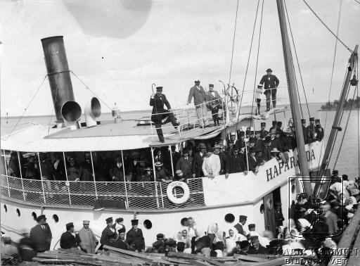 | Kapten på Haparanda torde vara sjökaptenen Carl Oskar Krook ( morfars bror till David Svanberg). Troligen handlar det om någon speciell tillställning då så många människor samlats för en resa med turbåten Haparanda. Bilden ur Filipsborgs fotosamling. Bildarkivet tar gärna emot kompletterande information om bilden. |