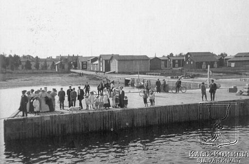 På kajen står människor och väntar på den båt man ämnar resa vidare med. Bilden ur Filipsborgs fotosamling. Bildarkivet tar gärna emot kompletterande information om bilden.