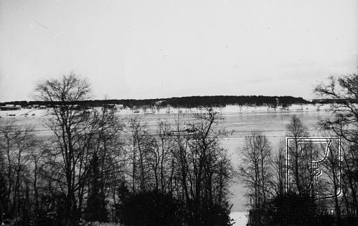 Troligtvis var detta bland dom sista turerna för säsongen innan vintern sätter stopp för båttrafik på älven. Bilden är tagen från Filipsborgs herrgård, men vilken båt som här forcherar isen är svårt att avgöra. Bilden ur Filipsborgs fotosamling. Bildarkivet tar gärna emot kompletterande information om bilden.