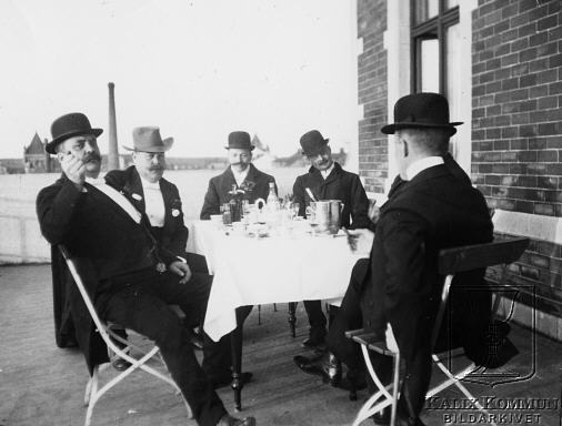 På bilden ser vi Simon Svanberg med sina vänner ute på den övre terassen av hotell statt i Luleå. Bilden ur Filipsborgs fotosamling. Bildarkivet tar gärna emot kompletterande information om bilden.