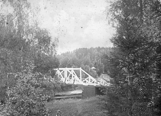 Den vita brobyggnaden över korpikån uppe vid Björkfors är i sin konstruktion av samma typ som "kyssarnas bro " på kurorten Nordanskär. Bilden ur Filipsborgs fotosamling. Bildarkivet tar gärna emot kompletterande information om bilden.