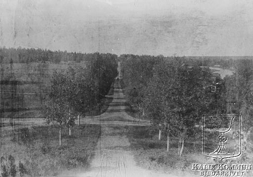 Bilden föreställer vägen från Björkfors herrgård i riktning mot Lappträsk. Lägg märke till den björkallé som kantar vägsträckningen. Till höger i korsningen leder vägen ned till sågen och till vänster upp mot Granån. Bilden ur Filipsborgs fotosamling. Bildarkivet tar gärna emot kompletterande information om bilden.