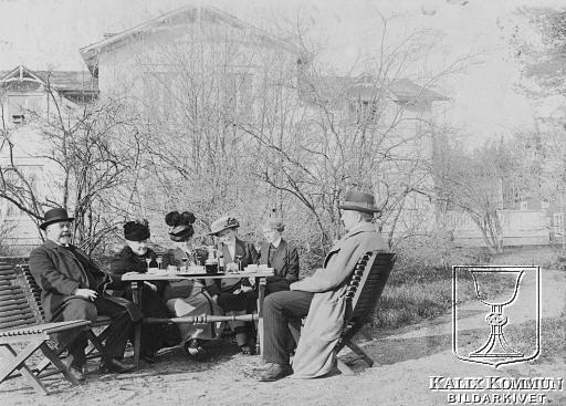 Dom kvinnor som sitter på bänken är troligen systrarna Taube. Bilden ur Filipsborgs fotosamling. Bildarkivet tar gärna emot kompletterande information om bilden.