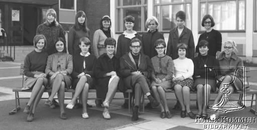 Bakre fr.v. Agneta?, Carin Nyberg, Hjördis Andersson, Greta Sundén, Anita Stenelund, Anita Utter, Christina Nordgren. Främre fr.v. Anita Nilsson, Ulla Larsson, Margareta Sandberg, Anita Westberg?, Lars Jönsson, Vera Åkerström, Mariann Linberg, Märith Johansson,?.