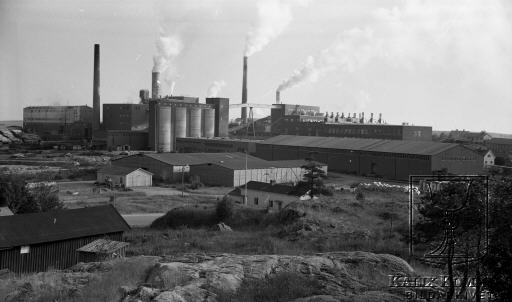Så ser det ut på "Låsholmarna" (som platsen en gång hette, hundra år tidigare ) Ett papers- och massabruk sida vid sida med det sågverk som oavbrutet funnits verksam på Karlsborg (utanför bild till höger).