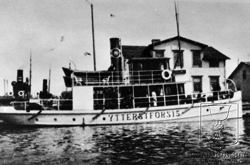 Bogserbåten Ytterstfors 15 vid Speditionskajen i Karlsborg. Årtalet är väldigt osäkert. Bildarkivet tar gärna emot förtydligande uppgifter om motivet.