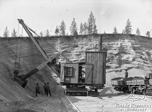 Under perioden mellan 1902 och 1918 byggdes järnvägen från Morjärv till Lappträsk - Karungi - Övertorneå och Haparanda. Den grävmaskin man använde var en av dom första i sitt slag. Kanske var drivmotorn av sk. "kultändartyp" .