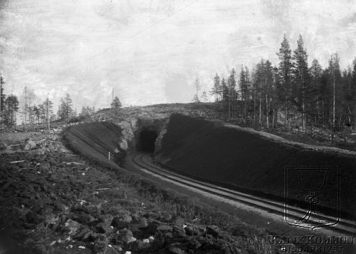 Under perioden mellan 1902 och 1918 byggdes järnvägen från Morjärv till Lappträsk - Karungi - Övertorneå och Haparanda. På bilden ser man den nybyggda tunneln i Vitvattnet.