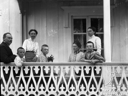 | Under perioden mellan 1902 och 1918 byggdes järnvägen från Morjärv till Lappträsk - Karungi - Övertorneå och Haparanda. Dom människor som fotografen mötte under sitt arbete med järnvägen dokumenterade han gärna. Familjen samlad för fotografering. Bildarkivet tar gärna emot kompletterande uppgifter om motivet. |