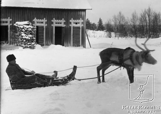 Under perioden mellan 1902 och 1918 byggdes järnvägen från Morjärv till Lappträsk - Karungi - Övertorneå och Haparanda. I dessa trakter användes renen som dragdjur för att kunna färdas vintertid över snörika områden. Bildarkivet tar gärna emot kompletterande uppgifter om motivet.