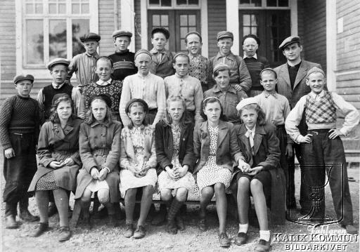 Karlsborgs skola 1946-1947, klass 7. Läraren var Margit Parde, vik. lärare Arne Wälivaara. Bildarkivet tar gärna emot kompletterande information om bilden. |  |